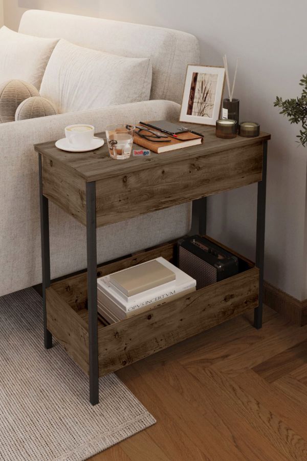ჟურნალის მაგიდა სათავსოთი მუქი ხის ფაქტურით (BF-684)