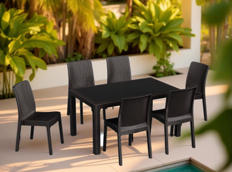 რატანის მაგიდა 6 სკამით ყავისფერი (SP923)