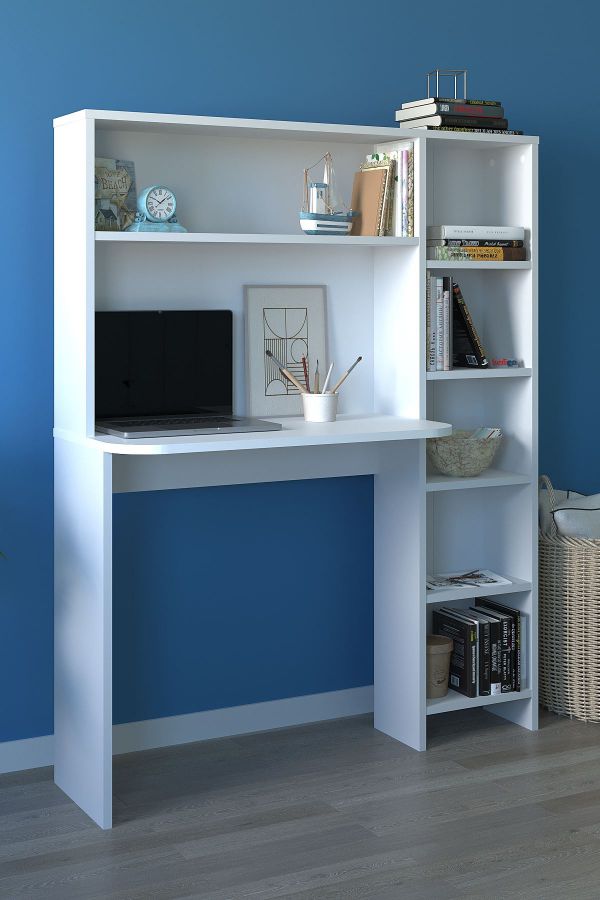 საოფისე/სამეცადინო მაგიდა თაროებით თეთრი (BF-844)