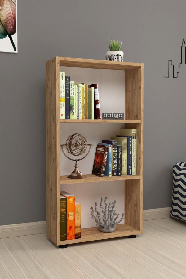 3 დონიანი წიგნების თარო ფიჭვის ფაქტურით (BF-765)